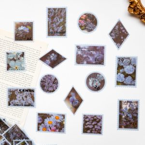 SALE!sold out箔押し 切手風フレークシール 45枚 ブルー blue [AZ822]