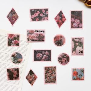 残り1点SALE!箔押し 切手風フレークシール 45枚 ピンク pink [AZ824]